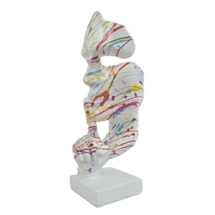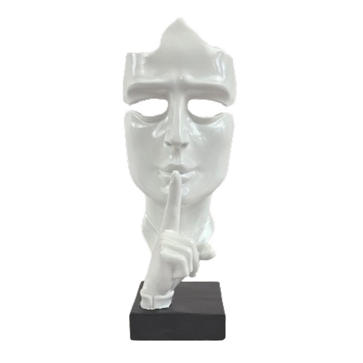 Statue en résine sur socle visage de femme design blanc le signe du silence 23 c