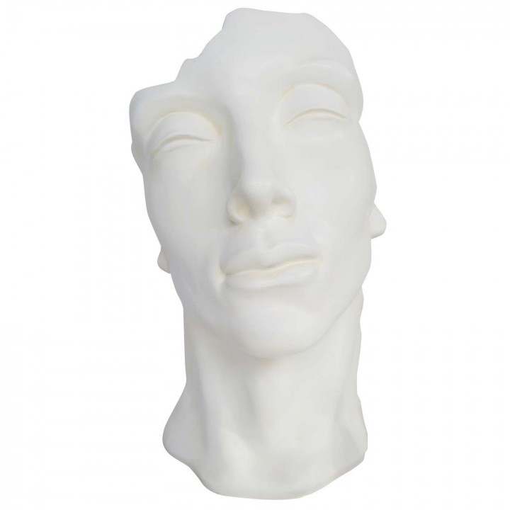 Statue en résine sur socle visage de femme design plash fond blanc le signe du s