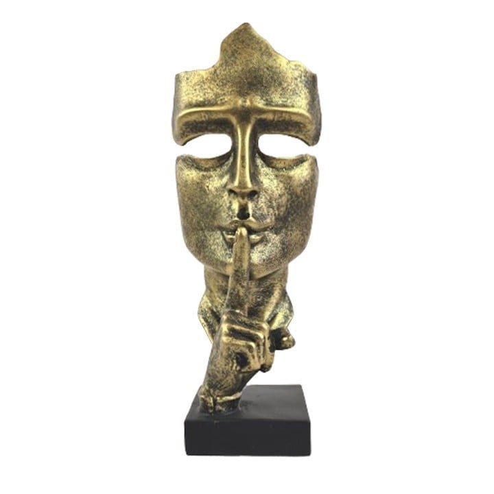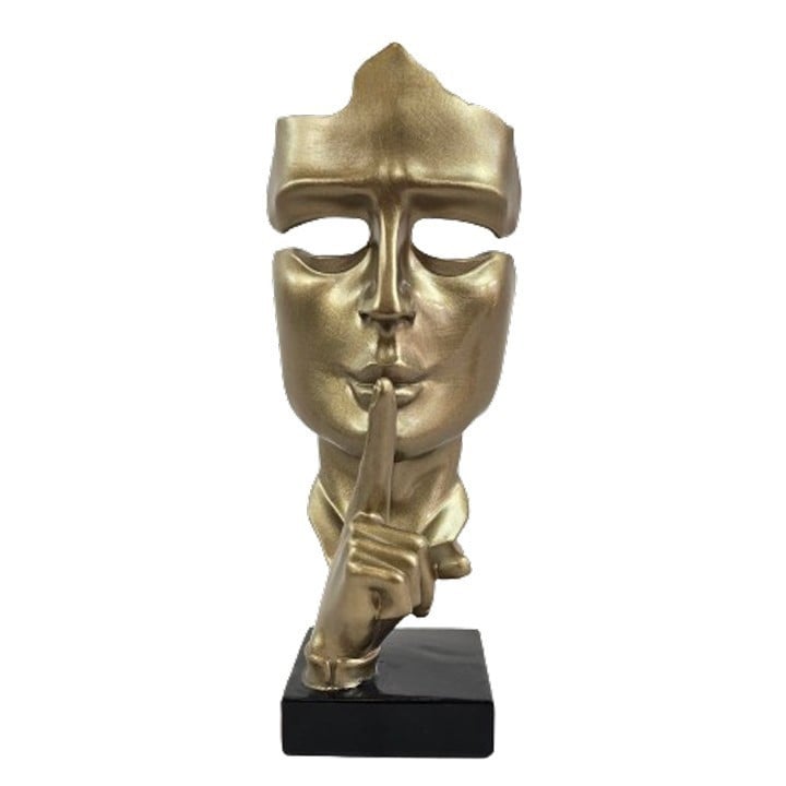 Statue en résine sur socle visage de femme design doré le signe du silence 23 cm