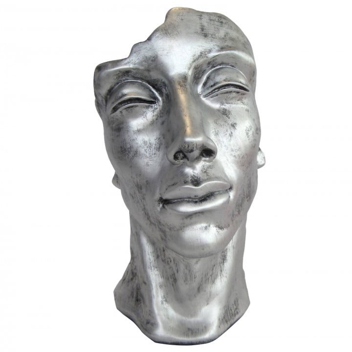 Statue en résine sur socle visage de femme design acier le signe du silence 23 c