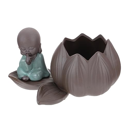 Toddmomy Décoration D'aquarium Sculpture De Bouddha en Céramique Statue De Moine Zen Figurine De Moine Zen Statue De Moine en Céramique Porte-bonsaï en Céramique Pot Poupée Aneth Vert
