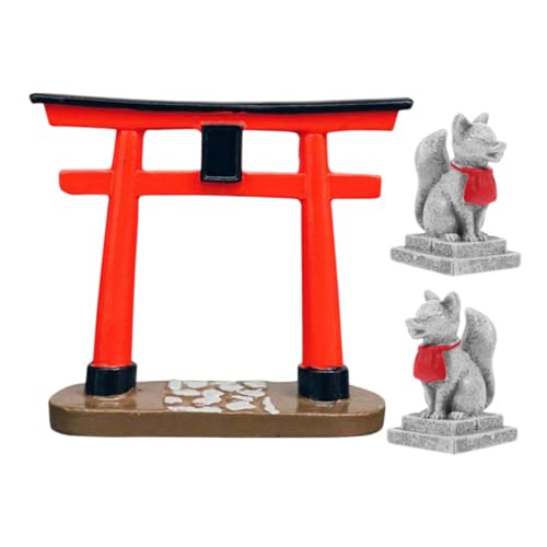 Toddmomy Porte Torii Japonaise : Portail Shinto-Torii Miniature Rouge Figurine de Renard Blanc Maison de poupée pour Aquarium Torii Feng Shui Statue Lueur Zen Accessoires de Jardin