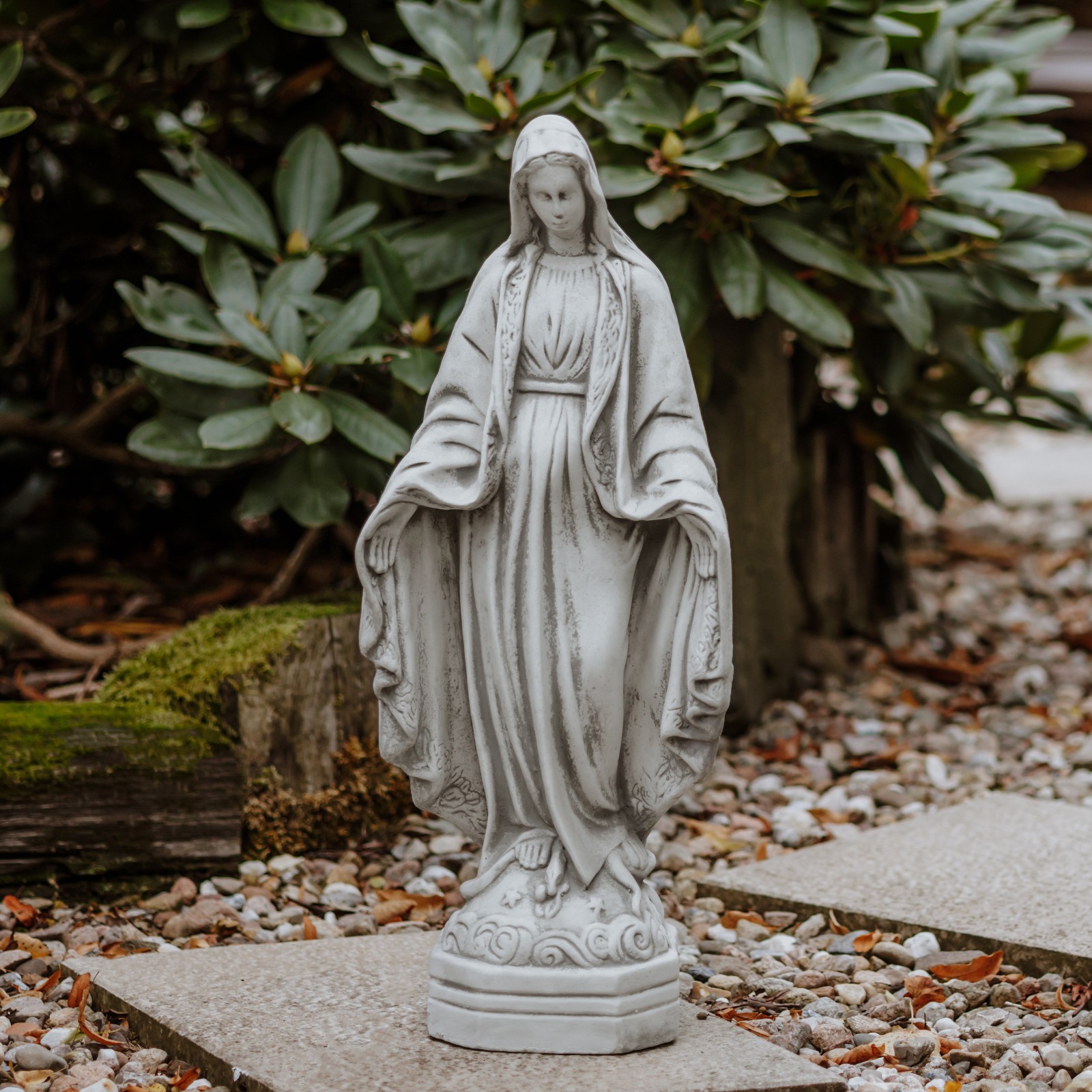 Statuette en pierre Vierge Marie 69 cm 22 kg gris béton blanc résistant au gel