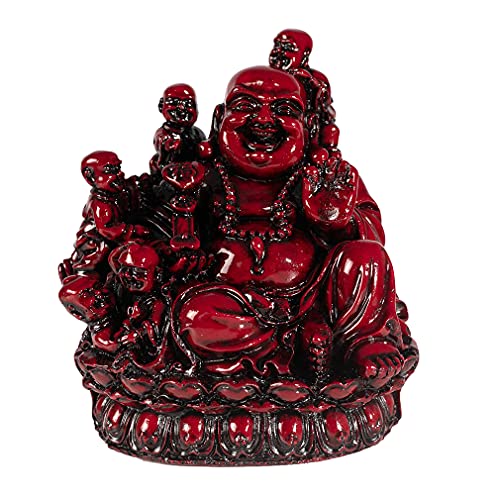 lachineuse - Statuette Bouddha Traditionnel aux Enfants - Reproduction Originale Bouddha Rieur - Famille, Bonheur & Prospérité - Statue Résine Rouge 14,5 cm - Idée Déco & Cadeau Chine, Asie