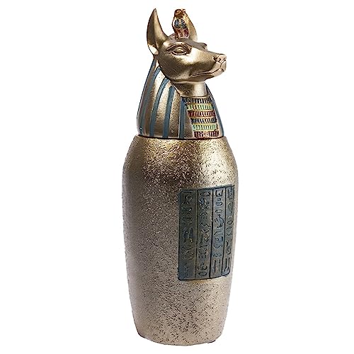 lachineuse - Vase Canope Anubis - Statuette Égyptienne 21 cm - Objet Décoration Égypte Antique - Statue Figurine Pharaon Tête de Chacal - Idée Cadeau Déco Coffret Urne - Coloris Bronze Doré