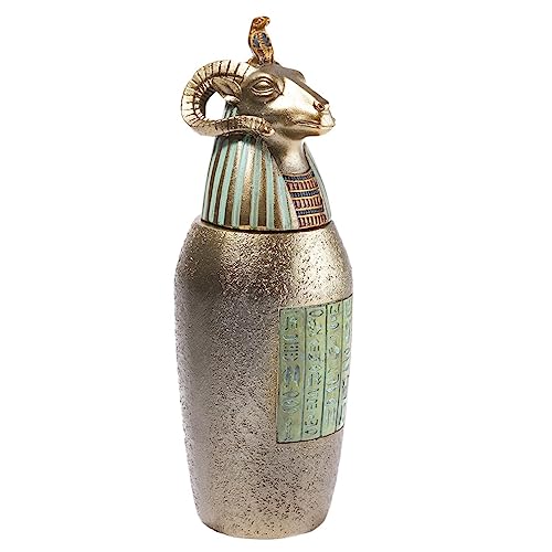 lachineuse - Vase Canope Hapi - Statuette Égyptienne 21 cm - Objet Décoration Égypte Antique - Statue Figurine Statuette Tête de Bélier - Idée Cadeau Déco Coffret Urne - Coloris Bronze Doré