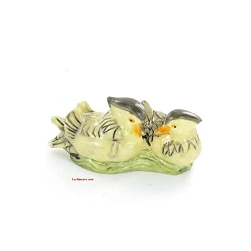 lachineuse - Figurine Canards Mandarins - Statuette Feng Shui - Symbole d'amour & Fidélité pour Couple, Romance - Idée Cadeau St Valentin - Décoration - 11,5 x 5 x 5 cm - Coloris Ivoire & Vert