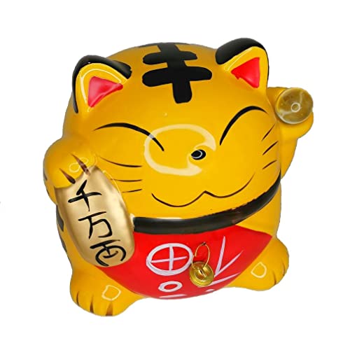 lachineuse - Chat Maneki Neko Jaune - Figurine Statuette Chat Japonais Porte Bonheur - Objet Kawaii Déco - Lucky Cat Porcelaine 15,5 cm - Chat Mignon Asiatique - Chance, Bonheur, Fortune