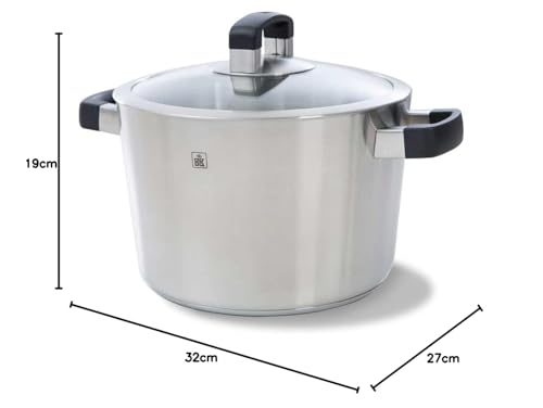 BK Conical Cool Marmite à soupe en acier inoxydable compatible induction 24 cm/6 l avec couvercle, passe au four et à la rouille jusqu'à 230 °C, passe au lave-vaisselle, poignées Stay-Cool, sans PFAS, argent