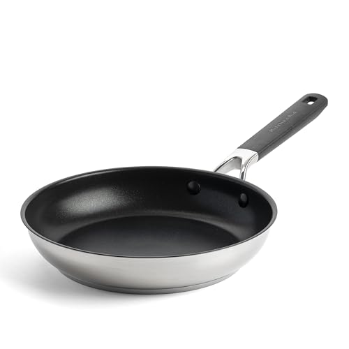 KitchenAid Classic Stainless Steel Poêle à Frire de 24 cm en Acier Inoxydable Sans PFAS Céramique Saine Non-adhésive, Clad, Induction, Poignée Stay-Cool, Va au Four jusqu'à 160°C, Argent