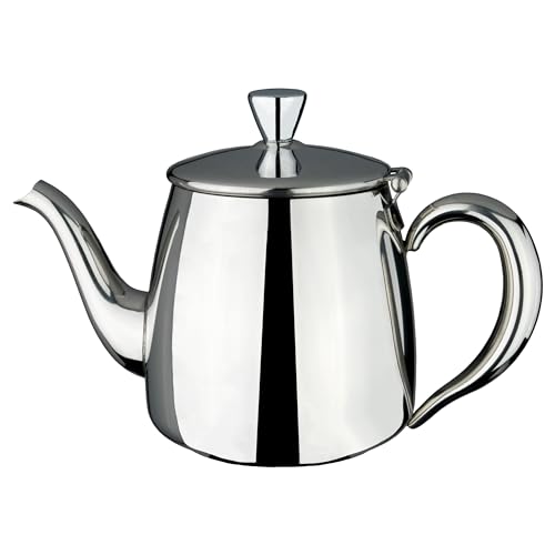 Café Olé Théière PT-018 Premium, acier inoxydable 18/10, poli miroir, 18 oz, poignées creuses Stay Cool, bec verseur parfait, argent