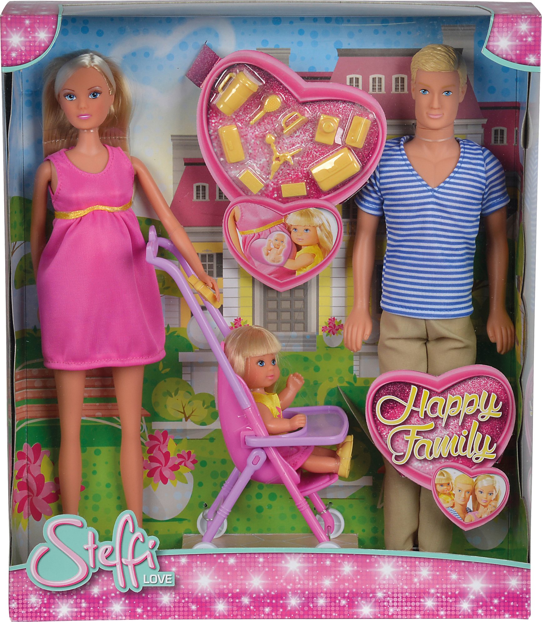 SL Happy Family Super Dupa - Steffi enceinte, bébé, Evi en poussette, Kevin