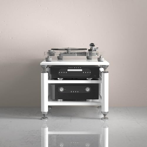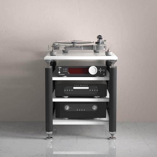 Support multimédia AV avec pieds absorbant les chocs à 3 niveaux - Armoire audio stéréo - Tour de rangement DVD et console de tourne-disque pour divertissement à domicile (blanc)
