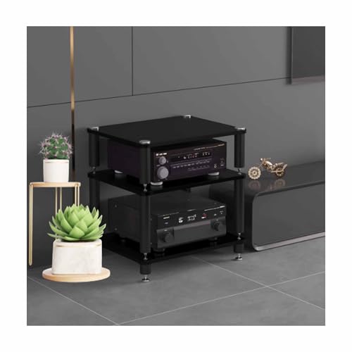 Support d'amplificateur de bureau à 3 niveaux – Rack multimédia HiFi AV compact pour composants stéréo, tour audio d'angle pour la maison et le bureau
