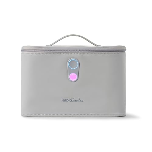 Nuby RapidSterilise Benchtop Stérilisateur UV pour biberon – Cycle de stérilisation en 3 minutes | Solution de stérilisation électrique UV rapide et efficace | Tue 99,9% des germes (gris)