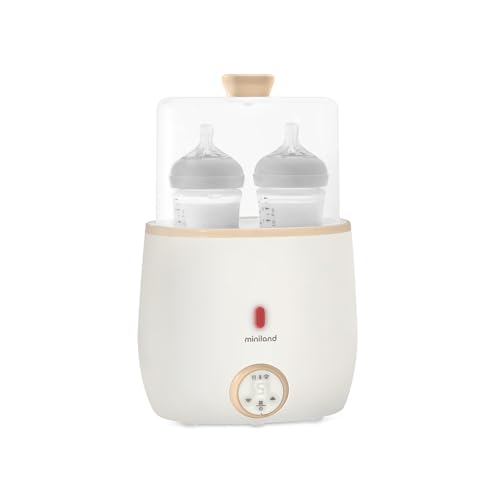 Miniland Warmy Twin - Stérilisateur de biberon et stérilisateur 2 en 1 - Chauffage rapide pour aliments pour bébé - Affichage numérique - Contrôle précis de la température du lait maternel - Beige