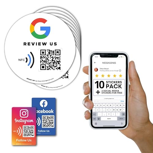 Autocollant réutilisable pour avis Google – Lot de 10 autocollants – Autocollant NFC QR & Tap – Évaluez-nous sur Google Tap Sticker – iPhone et Android – Autocollant Boost My Reviews – Configurer à la