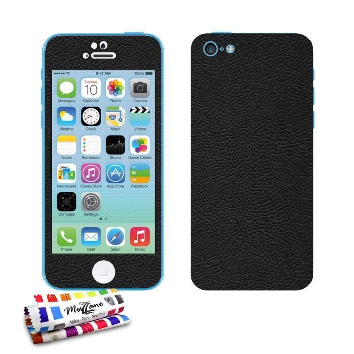 STICKER AUTOCOLLANT iPHONE 5C DESIGN CUIR 3D NOIR BLACK FULLBODY