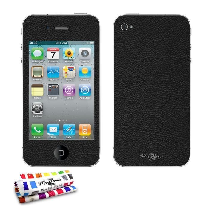 STICKER AUTOCOLLANT iPHONE 4 4S DESIGN CUIR 3D NOIR FULL BODY