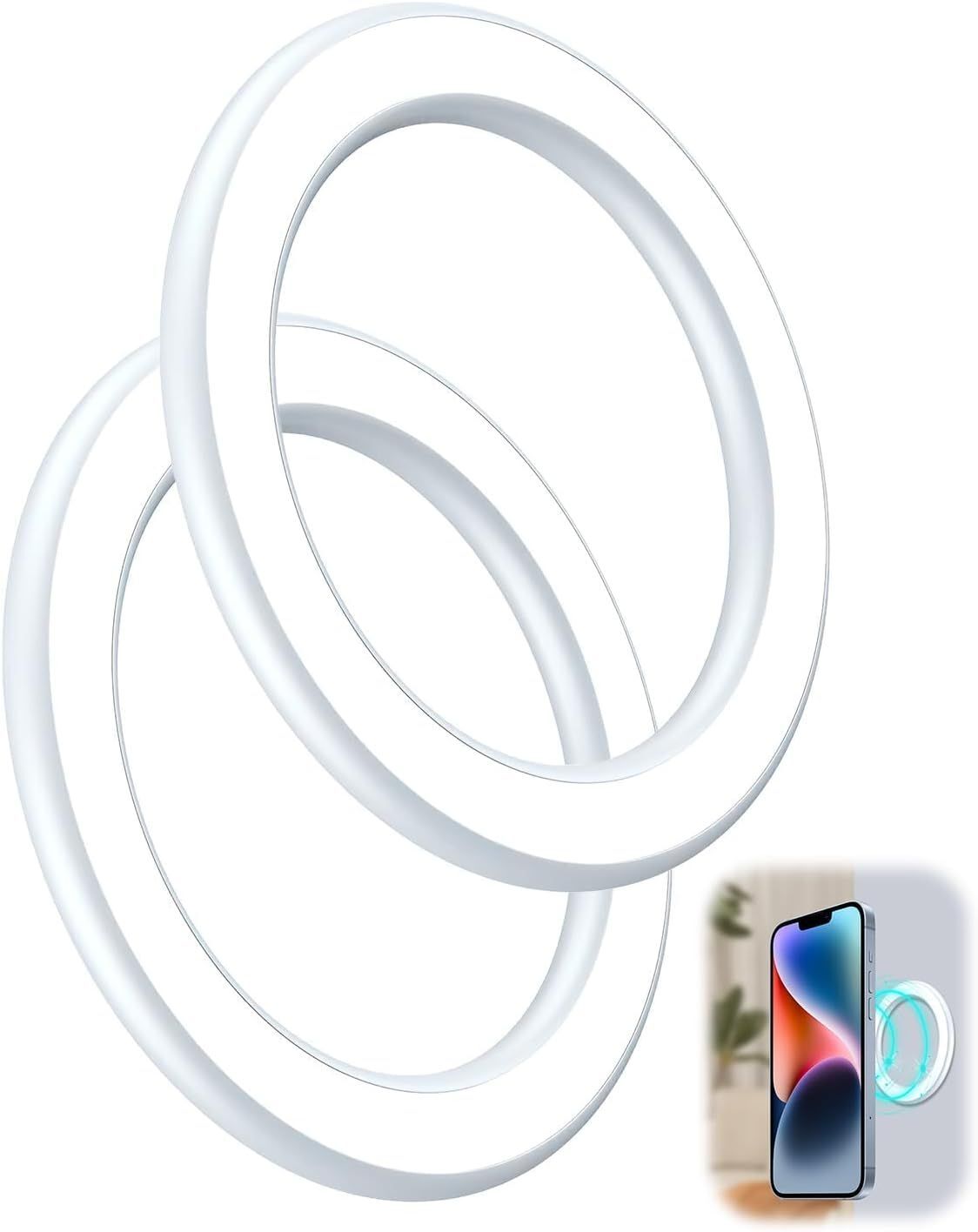 2 Pack Anneau MagSafe Mural Magnétique Mag-Safe Sticker Autocollant pour iPhone 12/13/14/15/16 Aimant N52H Coque en Alliage Support sans Traces (Blanc) pour Auto, Salle de Bain et Cuisine