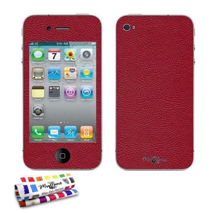 STICKER AUTOCOLLANT iPHONE 4 4S DESIGN CUIR 3D ROUGE FULL BODY