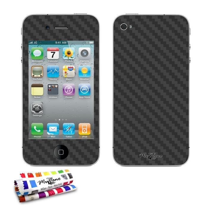 STICKER AUTOCOLLANT iPHONE 4 4S DESIGN CARBONE 3D NOIR FULL BODY