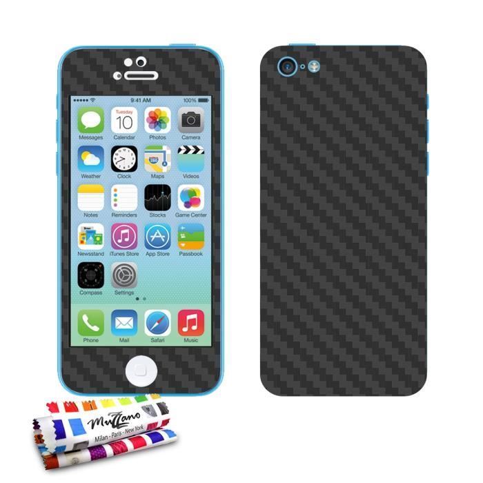 STICKER AUTOCOLLANT iPHONE 5C DESIGN CARBONE 3D NOIR BLACK FULLBODY