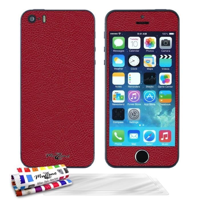 STICKER AUTOCOLLANT iPHONE 5 5S SE DESIGN CUIR 3D ROUGE FULLBODY + 3 FILMS
