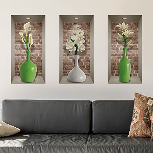Stickers Muraux Vases et Fleurs Décoration Chambre Adulte Auto Adhésif - Sticker Mural 3D Cuisine - Décoration Vases et Fleurs Intérieur 60 x 90 cm