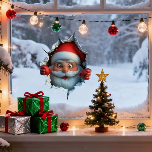 Sticker Mural Créatif De Noel 3D, 25X24X0.1CM Sticker Noel Fenetre Qui Brise Père Neige, Decoration Interieur, Faciles À Poser, Parfaits Pour Salon, L’entrée, La Chambre