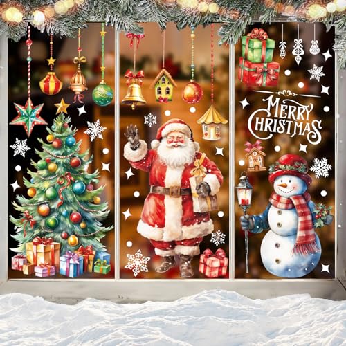 261 Sticker Noël Fenêtre, SILARLAIT 10 Feuilles Sticker Fenêtre Noël Électrostatique & Amovible & Réutilisable, Autocollant Décoration pour Vitre, Vitrine