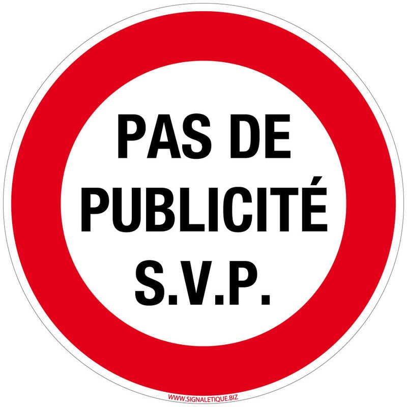 Panneau Autocollant Pas de Publicité s.v.p. Adhésif Stop Pub pour boîte aux lettres 83 mm diamètre. Sticker prospectus rond rouge - Adhésif