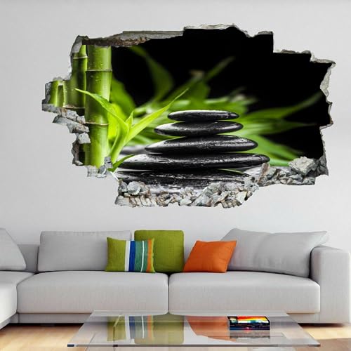 Sticker Mural 3D Amovible Pierre Décoration Murale Plancher Plafond Brisé Décalque Art Décoration Spa Bambou Pour Salle De Bain Chambre Salon Salle De Jeux Murale 75x50cm