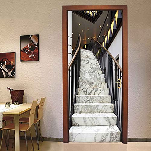 CBWRAW Stickers De Porte, 3D Intérieure Chambre Décoration Trompe L'Oeil Escaliers En Marbre Imperméablen Amovible Sticker Muraux Pour Adulte Enfant Salle Bain Poster Decoration 77x200cm