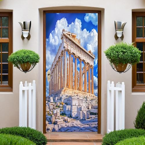 Papier Peint Porte 90x200 cm L'architecture grecque antique Trompe l'oeil Sticker Poster Porte Trompe l'oeil Intérieure Muraux PVC pour Décoration Mur Salon Cuisine Chambre Salle de Bain