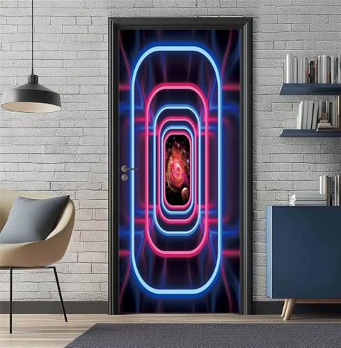 Stickers Porte 3D Trompe l'oeil Effect Techno Ligne Autocollants de Décoration pour Porte Interieure, Auto Adhésif PVC Autocollant Papier Peint Sticker Mural Pour Salle de Bain 90X200cm -DS401