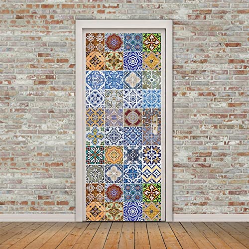 3D Papier Peint Porte Trompe l'oeil Sticker Poster Porte Trompe l'oeil Intérieure Muraux PVC pour Décoration Mur Salon Cuisine Chambre Salle de Bain 95x215 cm Style marocain