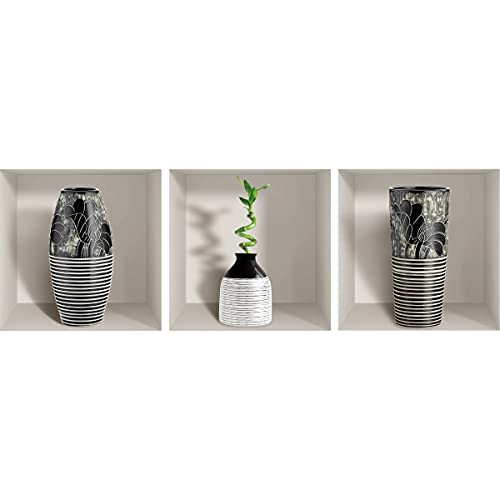 Stickers adhésifs 3D | Sticker Mural Autocollant effet 3D 3 vases modernes - Stickers muraux Chambre Adulte - Stickers muraux 3D - Decoration Murale Salon - Autocollants muraux Trompe l'oeil | 30x90cm