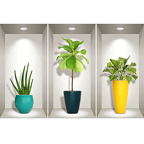 Stickers adhésifs 3D | Sticker Mural Autocollant effet 3D plantes dans les pots designs - Stickers muraux Chambre - Stickers muraux 3D - Déco Salon - Autocollants muraux Trompe l'oeil | 80 x 80 cm