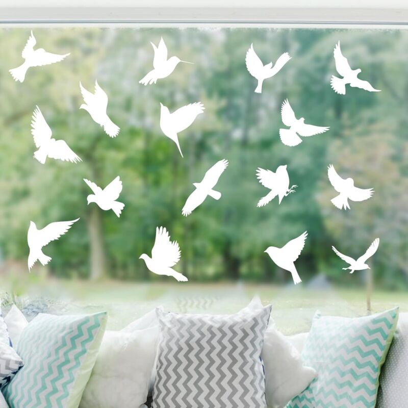 Autocollants Anti Collision Oiseaux pour Fenêtres, Stickers Anti Collision Oiseaux Effet Verre Dépoli UV, Silhouettes d’Oiseaux, Autocollants Fenêtre Anti-Collision pour Baies Vitrées et Vérandas