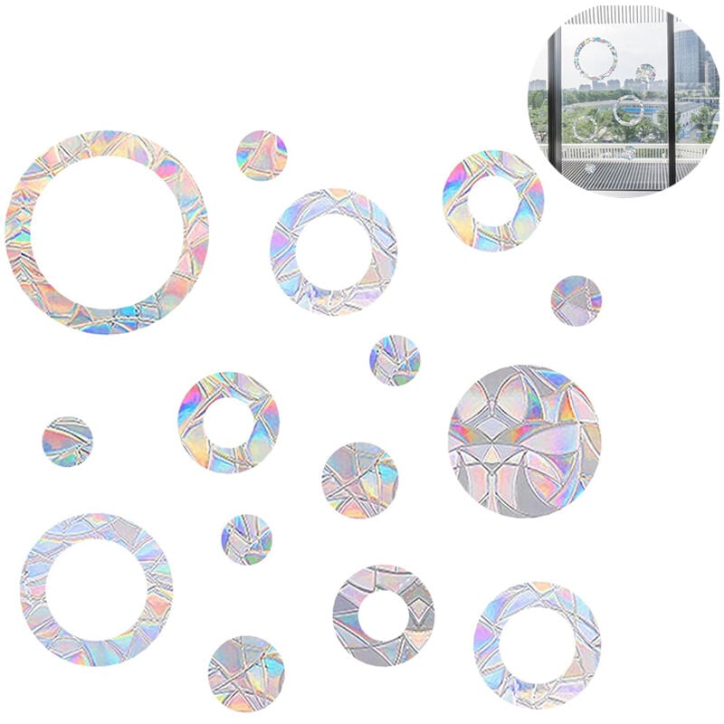 Lot de 32 Suncatcher Sticker Anti Collision Arc-en-Ciel Fenêtre Effet Prismatique Statique Fenetre Autocollants Rainbow Prism Autocollant en Verre Rainbow Stickers Window,pour Fenêtres Verre