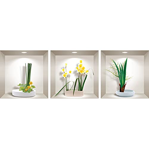 Stickers adhésifs 3D | Sticker Mural Autocollant effet 3D plantes dans les pots designs - Stickers muraux Chambre - Stickers muraux 3D - Déco Salon - Autocollants muraux Trompe l'oeil | 80 x 80 cm