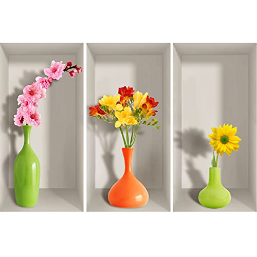 Stickers adhésifs 3D | Sticker Mural Autocollant effet 3D 9 vases multicolore - Stickers muraux Chambre Adulte - Stickers muraux 3D - Deco Murale Salon - Autocollants muraux Trompe l'oeil | 30x90cm