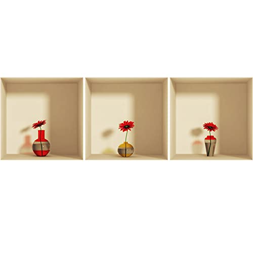 Stickers adhésifs 3D | Sticker Mural Autocollant effet 3D plantes et vases scandinaves - Stickers muraux Chambre - Stickers muraux 3D - Déco Salon - Autocollants muraux Trompe l'oeil | 60 x 60 cm
