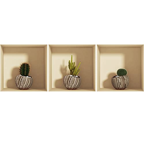 Stickers adhésifs 3D | Sticker Mural Autocollant effet 3D plantes cactus à pots - Stickers muraux Chambre Adulte - Stickers muraux 3D - Decoration Salon - Autocollants muraux Trompe l'oeil | 40x120cm
