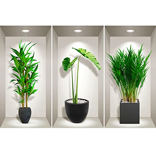 Stickers adhésifs 3D | Sticker Mural Autocollant effet 3D plantes déco séjour - Stickers muraux Chambre Adulte - Stickers muraux 3D - Decoration Salon - Autocollants muraux Trompe l'oeil | 80x120cm