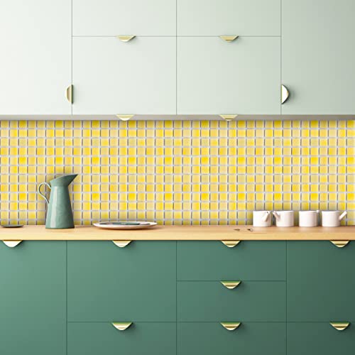 Credence Adhesive Pour Cuisine Mosaïque Jaune Vif Stickers Cuisine Auto-Adhésif PVC Stickers Muraux Cuisine Étanche Stickers Carrelage Cuisine Adhesive Sticker Salle de Bain10 Pièces(20X20cm)
