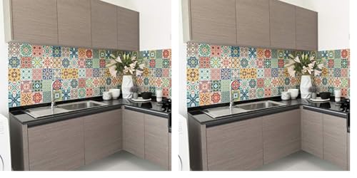 60 Stickers muraux Cuisine - Sticker Mural - Carreaux de Ciment adhésif Mural - Stickers Muraux azulejos - Sticker Carrelage adhesif Mural Salle de Bain 10 x 10 cm - 60 PCS Carreau de Ciment adhesif