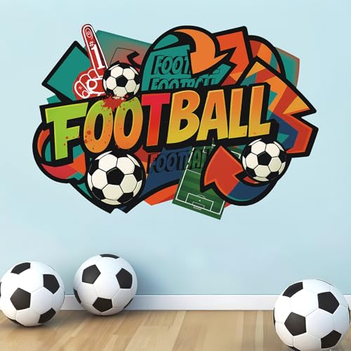 ANHUIB Stickers Muraux Football 3D, Autocollant Mural Coloré pour Chambre Garçon, Sticker Foot Déco Ado, Décor Salon et Chambre D'enfant
