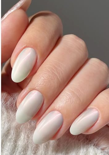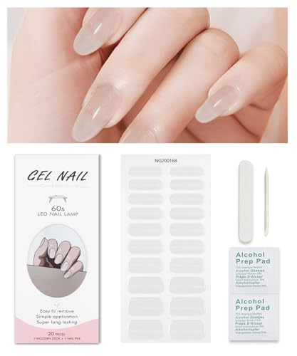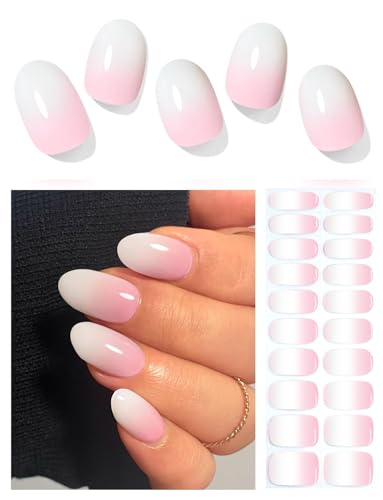 Nailog Faux Ongles Autocollants - 20Pcs Faux Ongles Autocollants -Stickers Ongles Gel UV Semi Cured,French Manucure Nails Wraps DIY Nail Art Accessoire pour Femmes Filles,Misty Glow